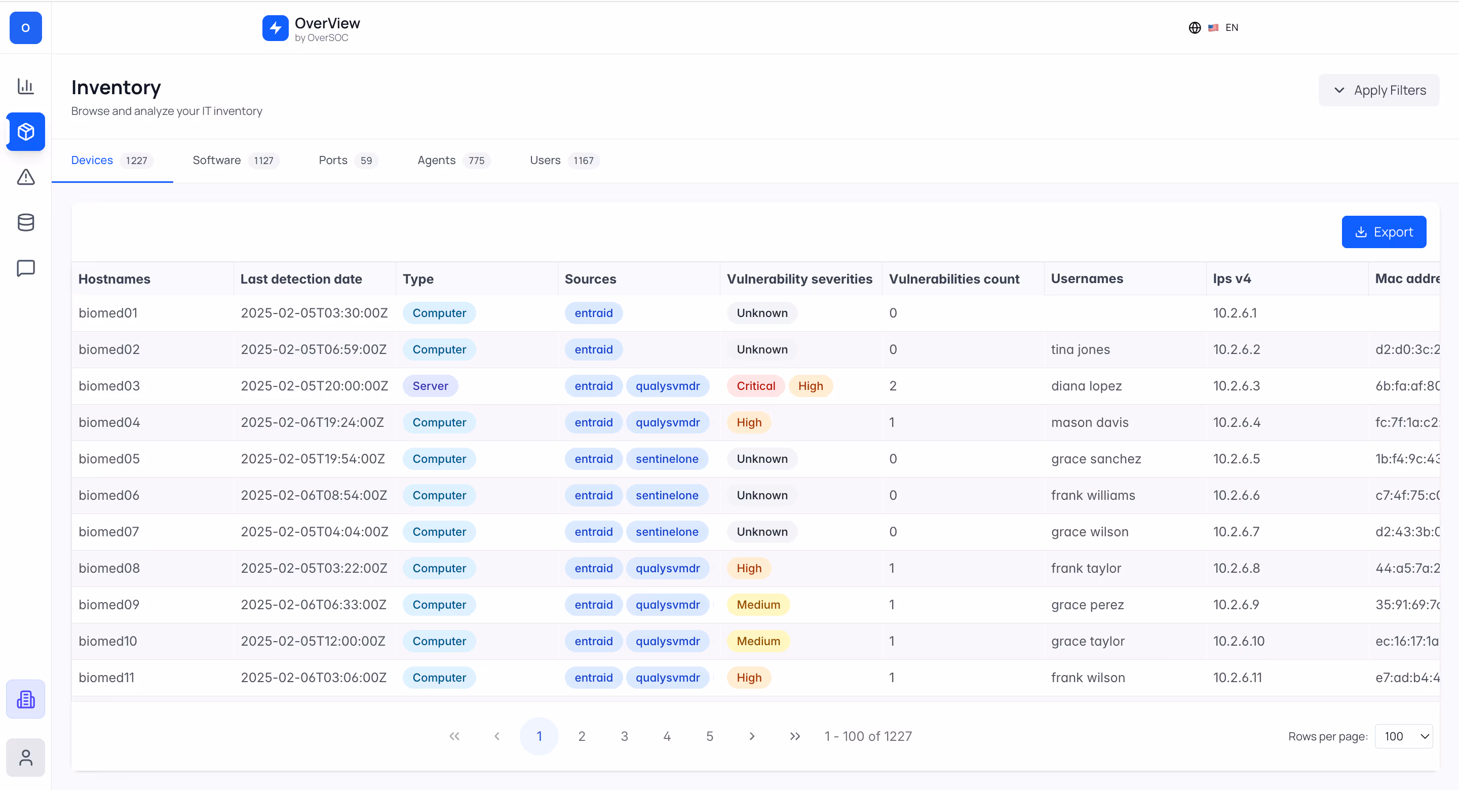 Finis les allers-retours entre outils ! OverView agrège et normalise automatiquement toutes vos données dans un référentiel unique, couvrant l'intégralité de votre parc IT, y compris le Shadow IT.
